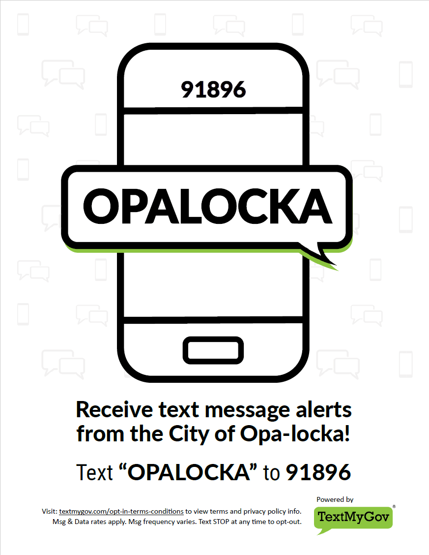 Simply text "OPALOCKA" to 91896 to subscribe to our text message alerts. Stay up-to-date with what's happening in your community!